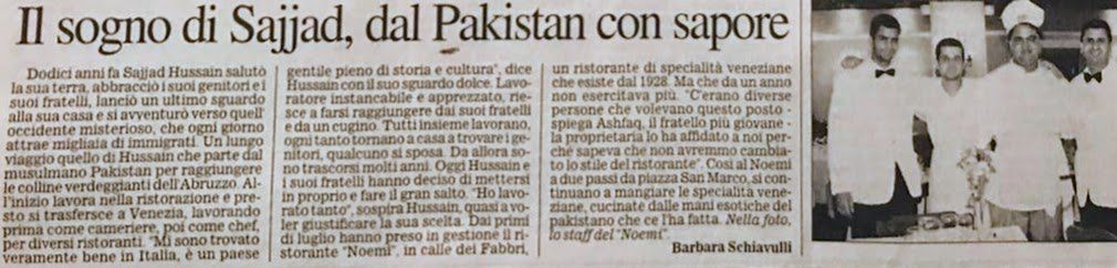 Benvenuti nel Ristorante Noemi, a Venezia.